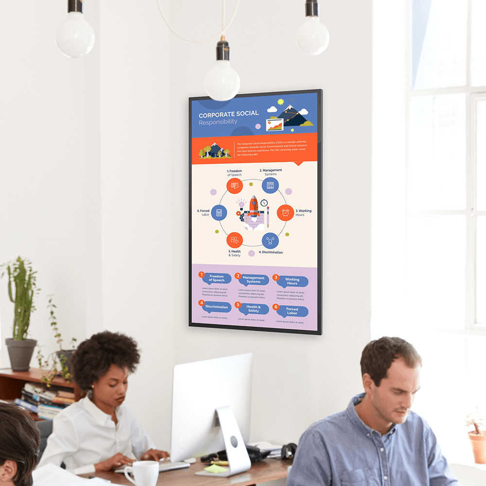 Build an effective and simple visual network to improve corporate communication and the overall office experience. Increase engagement within separate departments, branches, and companies. Effortlessly integrate corporate communication screens at any scale and into an unlimited number of offices. Easily update and edit your content on-the-fly with maximum security.