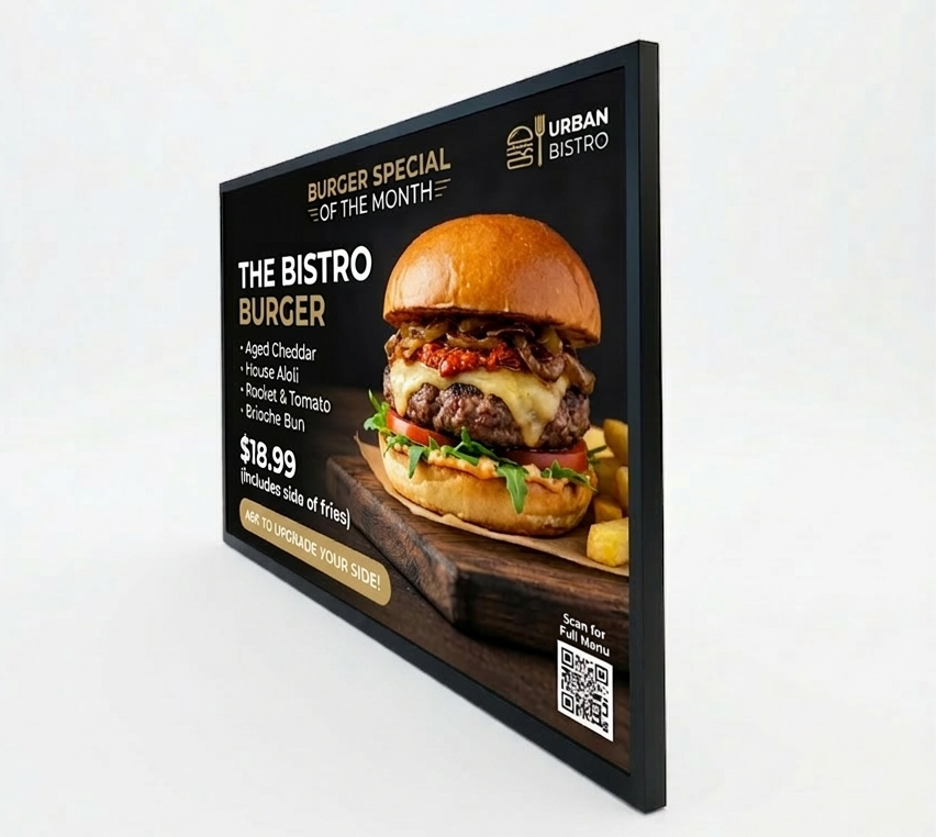 Engineered with high-brightness panels that keep content clear and visible even in bright ambient lighting — perfect for retail and high-traffic spaces
