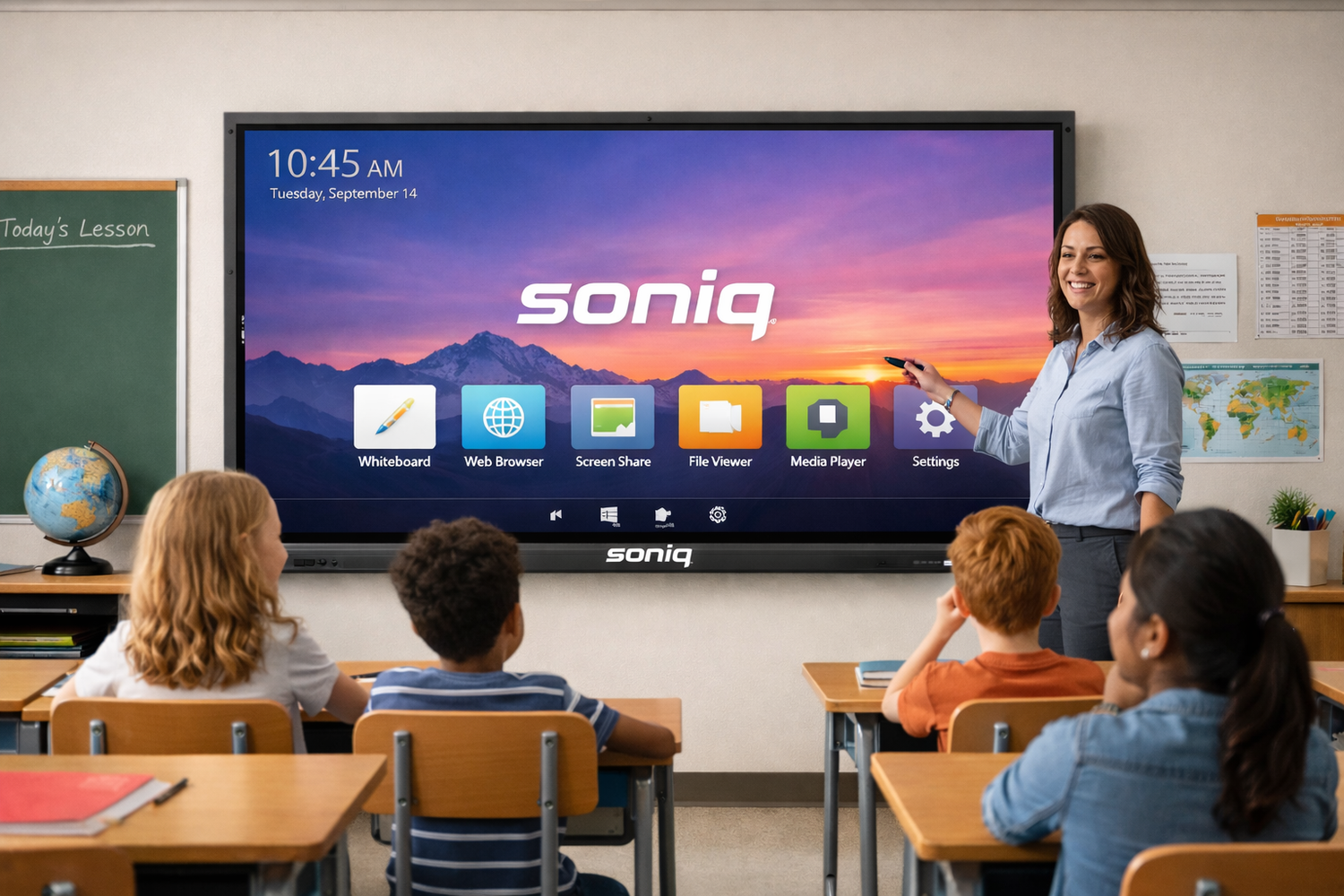 Soniq’s Interactive Whiteboard brings lessons to life. Students interact directly with vibrant content, while teachers annotate and guide in real time — turning every classroom session into an engaging, hands-on learning experience.