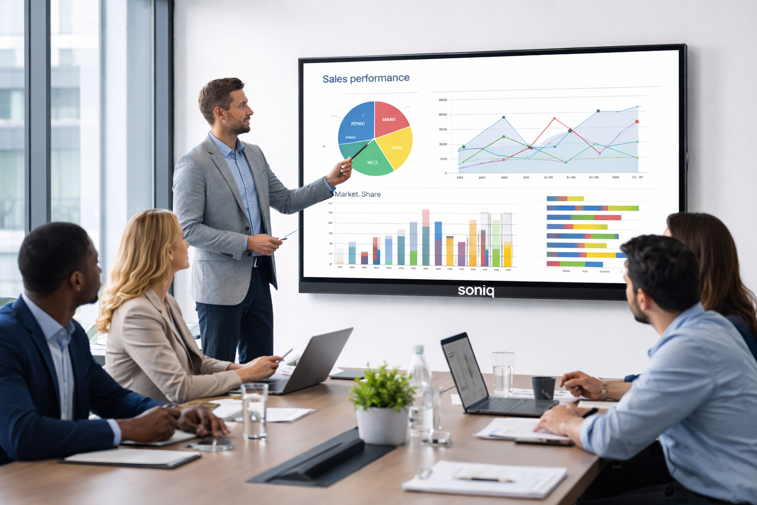 Soniq’s Interactive Whiteboard turns any room into a dynamic workspace. Multiple users can write, draw, and annotate simultaneously, making brainstorming, teaching, and presentations more engaging and productive.